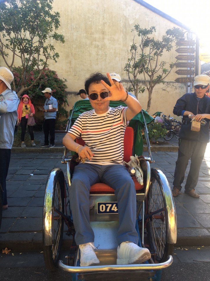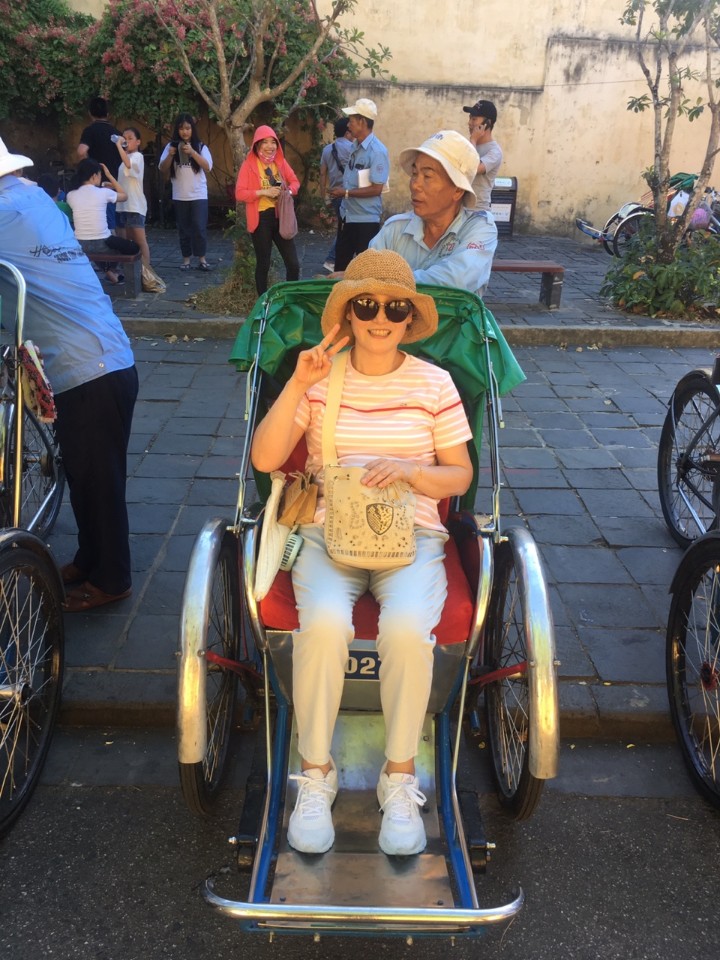 호이안에서 씨클로를 타고 사진을 찍으셨어요.
