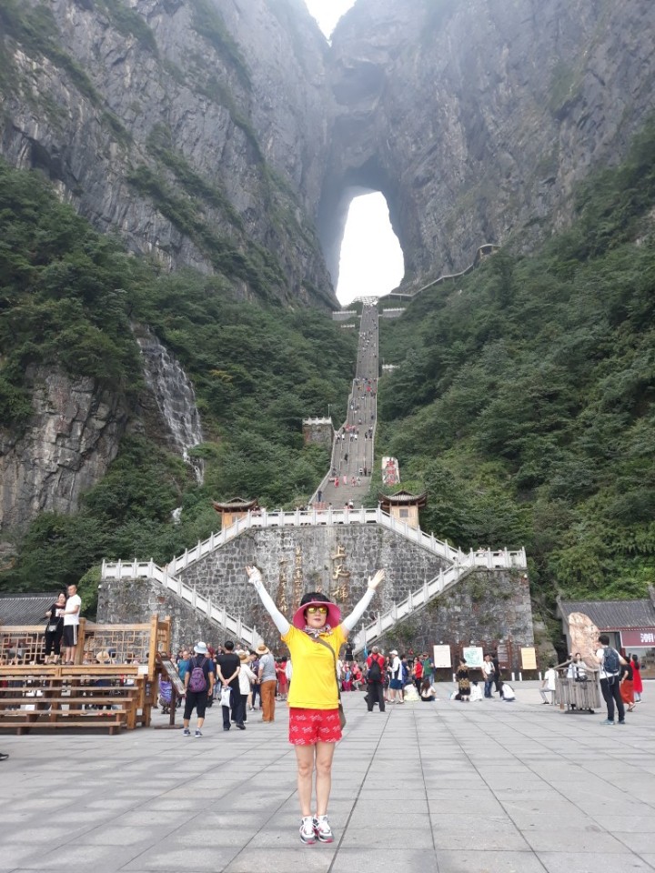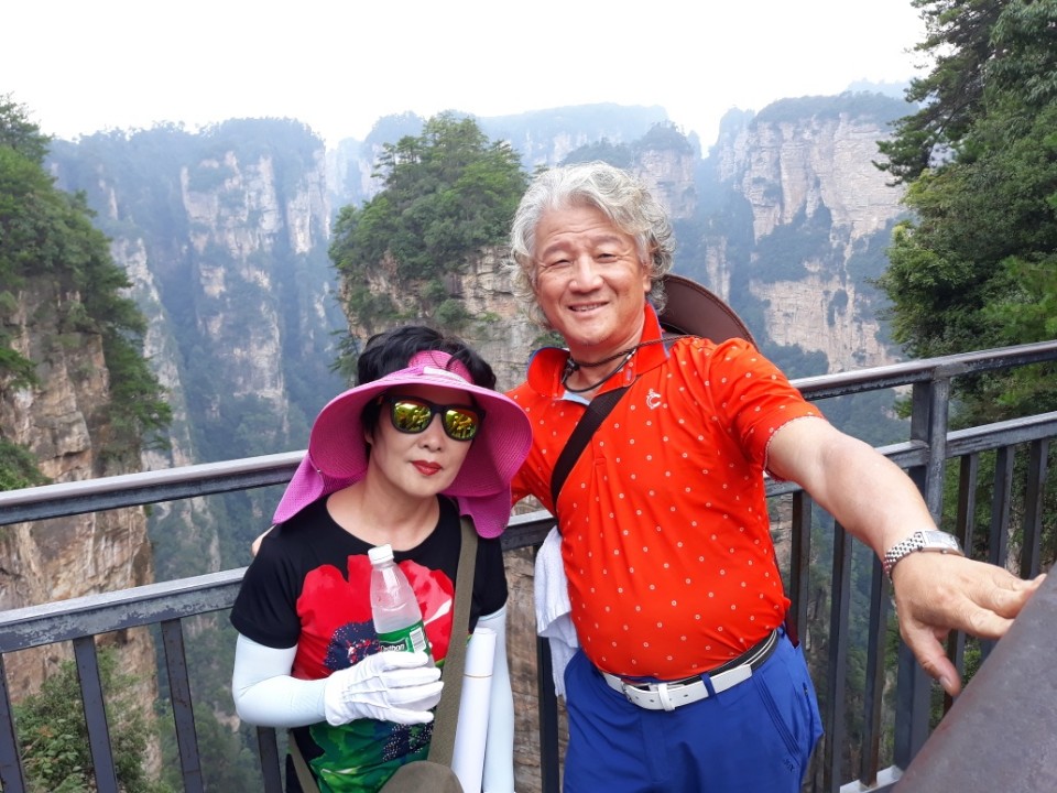 천자산에서 아주 환한 표정과 함께 사진을 찍어서 보내주셨어요.
