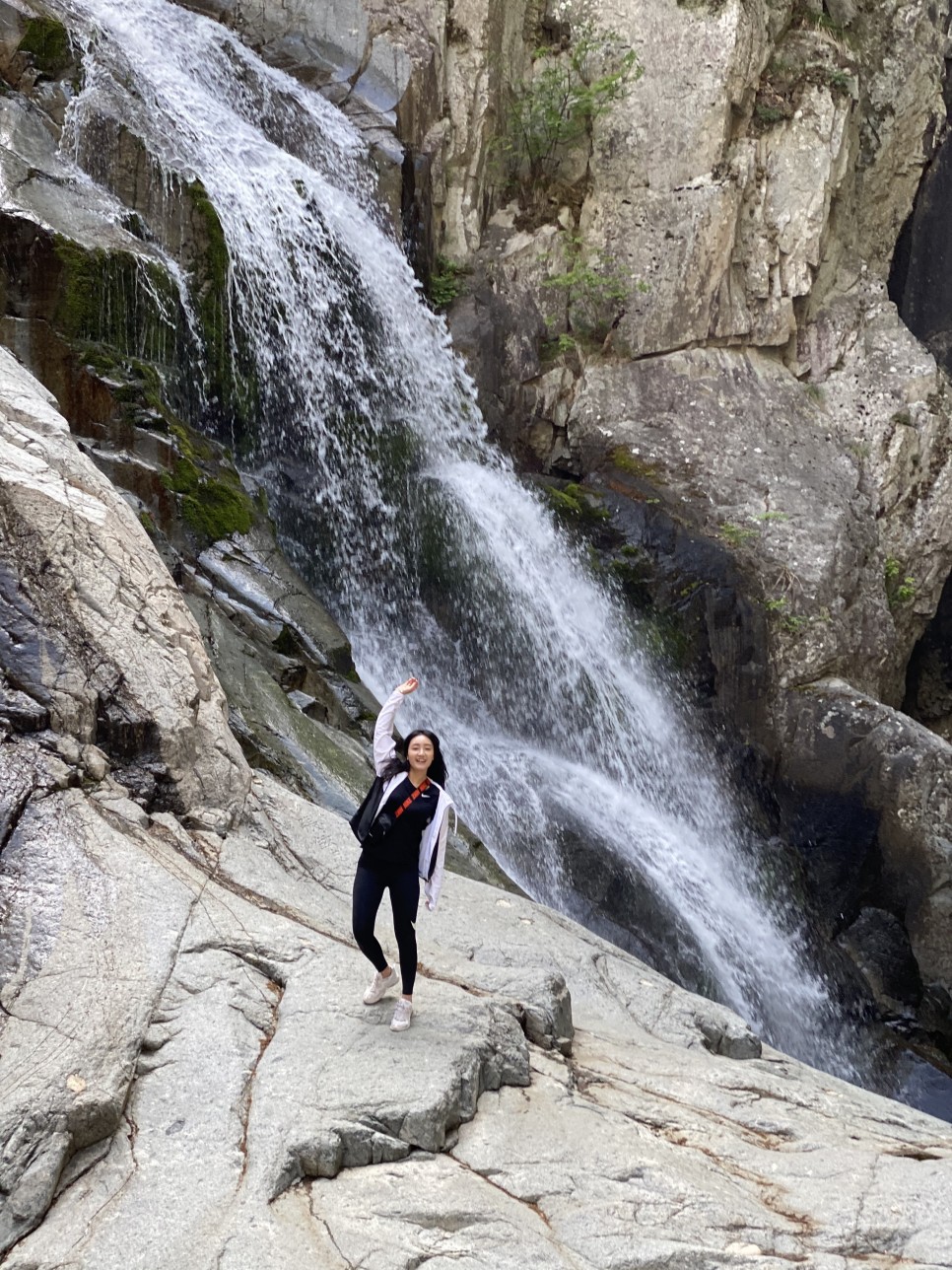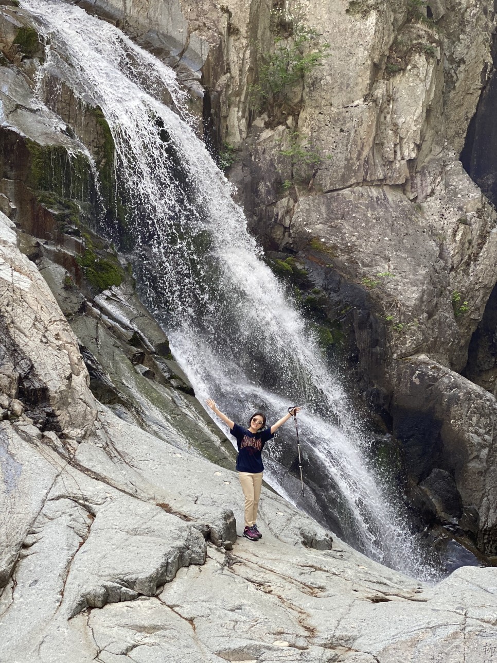 세차게 쏟아지는 폭포 앞에서 사진을 찍었어요 :)