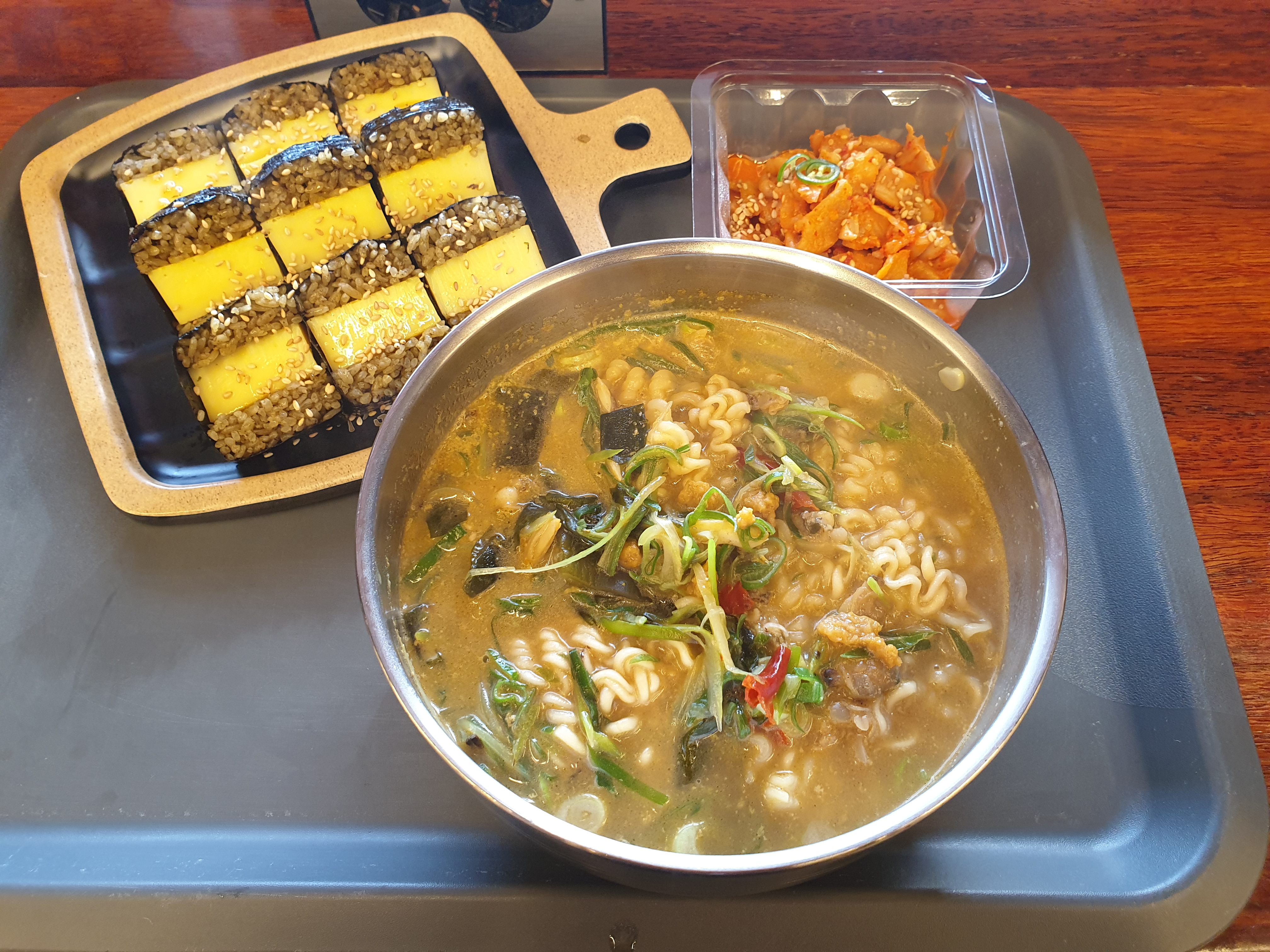 해물라면과 제주도에서만 맛볼 수 있는 김밥을 드셨네요!